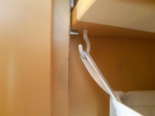 Underneath the shelf or the underside of the top of the cabinet, add 4 hooks for each bag – 12 in total.