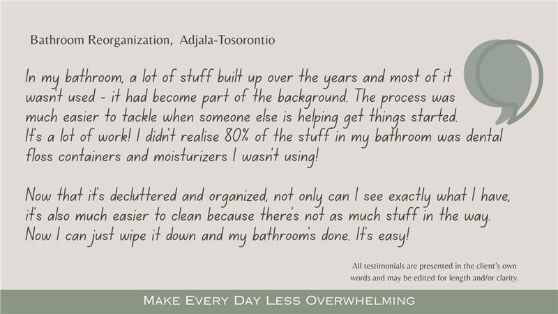 Small, affordable, and fast. Quick wins you can see right away. Each package is a 3 hour focused organizing session in a key area, plus curated organizing products.