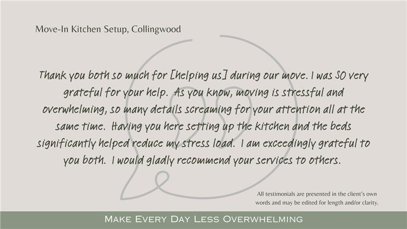 You’re involved as much or as little as you wish. We sort, set up spaces and make your home easier to live in.